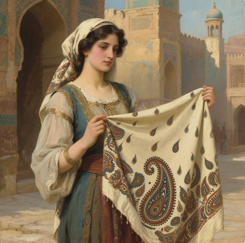 ペイズリー模様の起源は古代ペルシャとインドにまで遡り、当時の織物芸術や文化と深い繋がりを持っていました。ペイズリー模様の最も古いバージョンは「ボテ」と呼ばれ、手作りの製品や王室貴族の衣装に初めて登場しました。その複雑な模様は、高度な織技術、豊かな染料、そして上質なシルクやウールによって作られていました。それは装飾品であるだけでなく、当時の貴族の地位を象徴し、芸術的・文化的遺産の象徴でもありました。